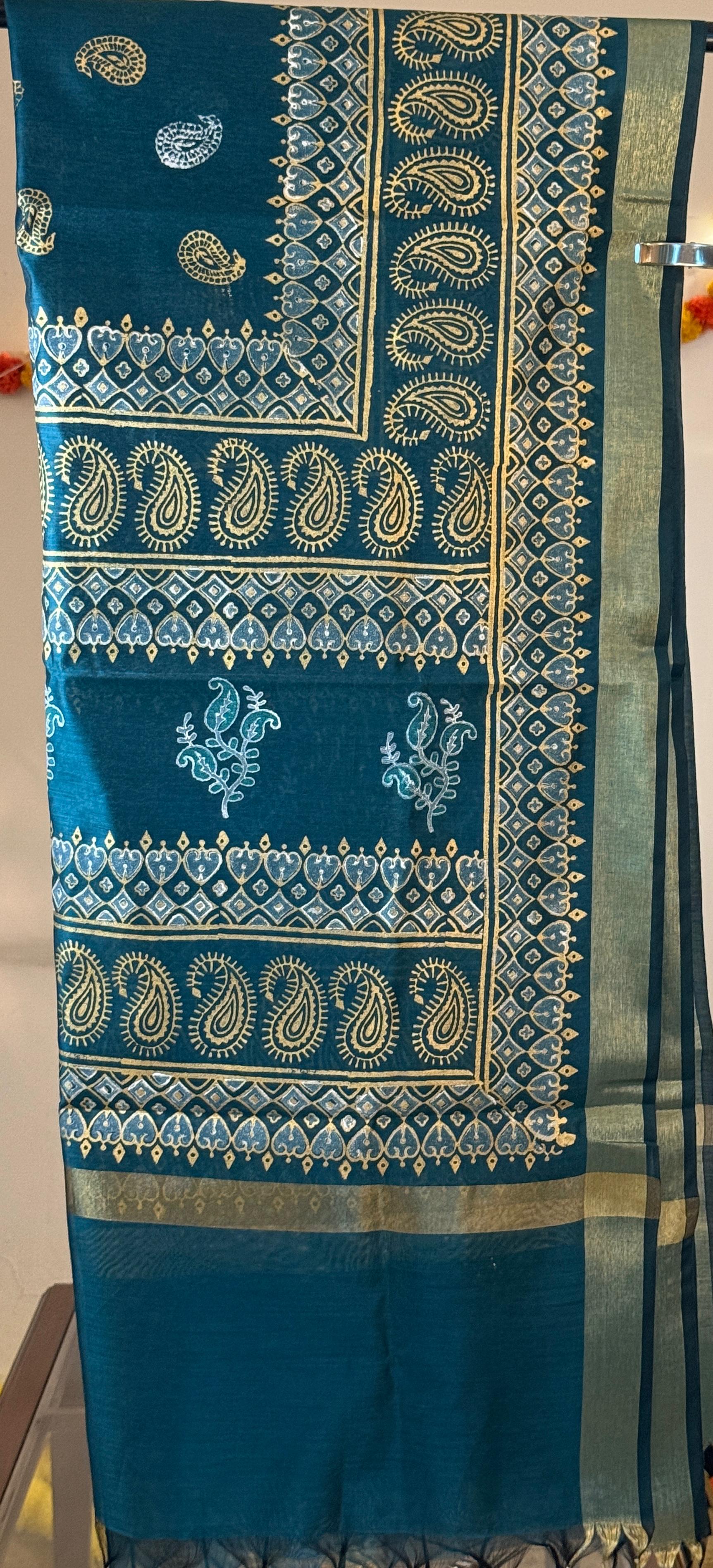 Hand block printed by women artisans using sustainable wooden techniques, Panna is a perfect companion for festive occasions, from intimate gatherings to grand celebrations. Its rich palette and graceful drape make it a thoughtful gifting choice and a wardrobe essential.