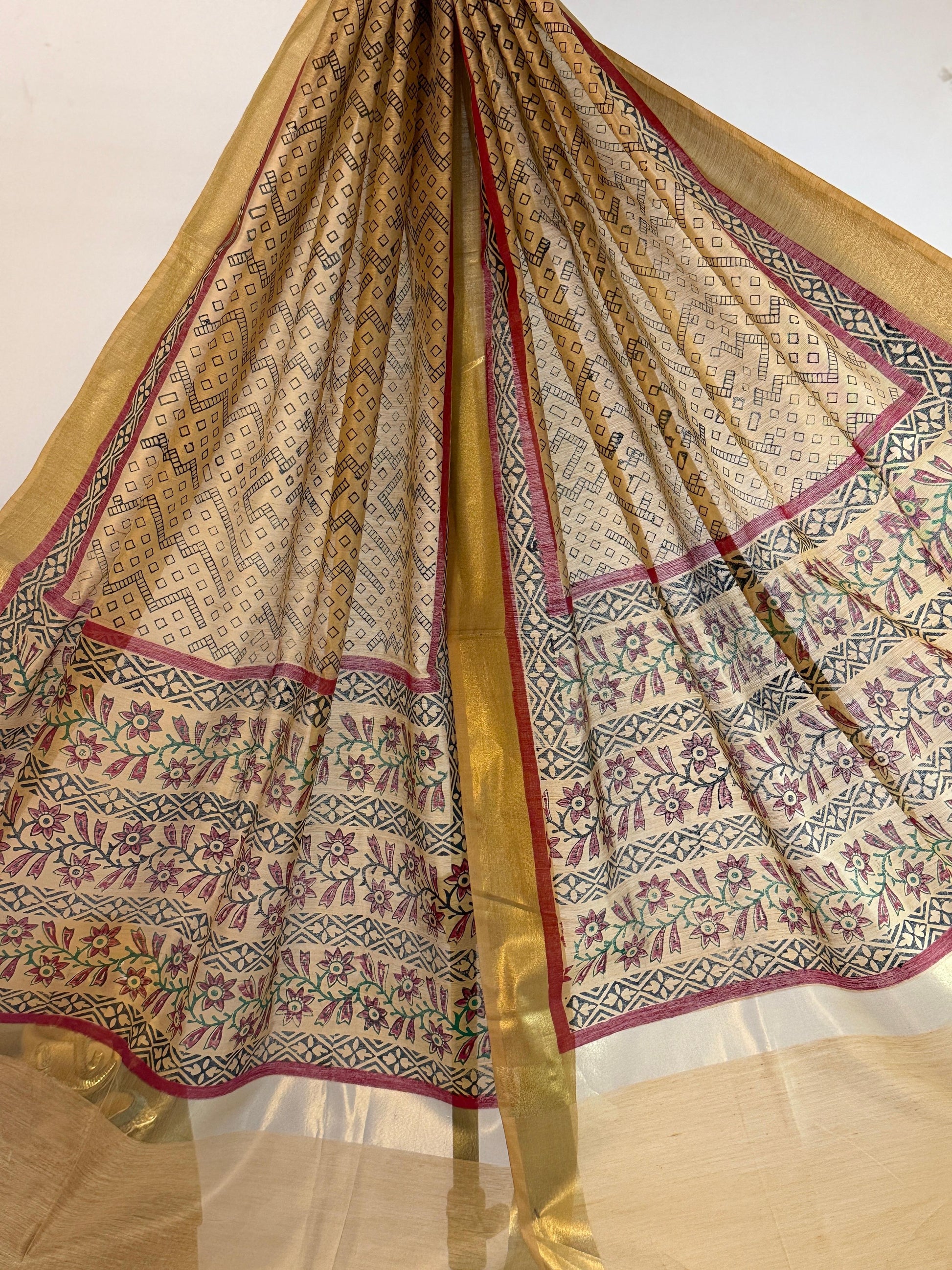 🌾✨ Rooted in tradition, Saanjh is our earthy beige Chanderi silk dupatta (48"x92" / 86x234 cm), hand-block printed with bold red and black motifs that echo the rhythm of rural craft and timeless design. Each imprint is a heartbeat from the soil—raw, grounded, and deeply expressive.