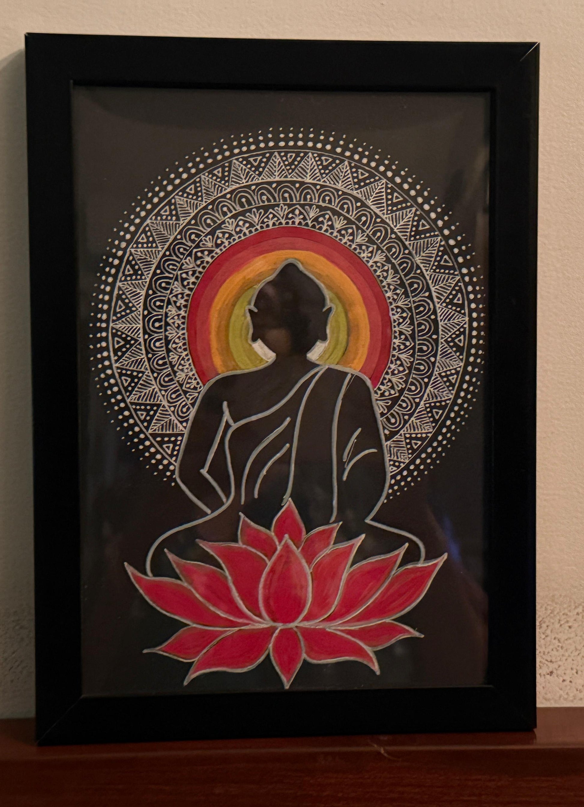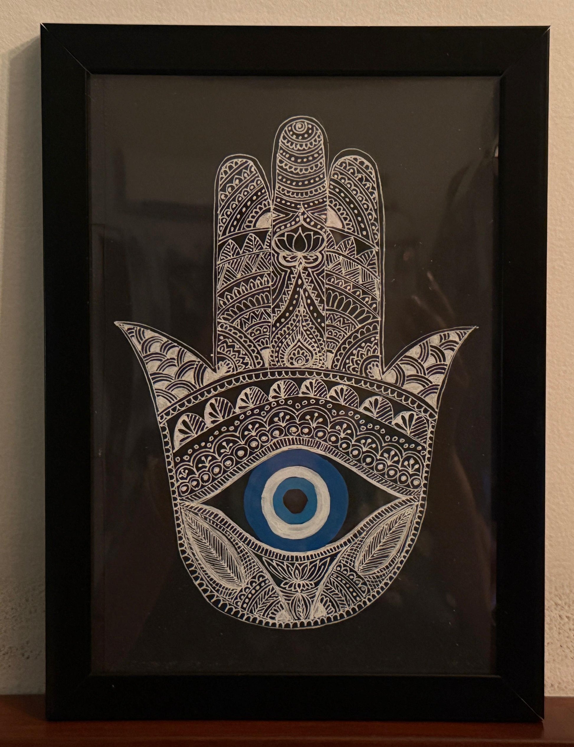 Handcrafted with devotion and detail, this trio of mandala artworks blends the serene presence of Buddha in yogic mudra, the protective grace of the Hamsa with Evil Eye, and the cosmic energy of Shiva. Each 6"x8" frame is a portal of peace, protection, and power—perfect for elevating your home, studio, or sacred workspace. Let these authentic creations infuse your space with quiet strength and spiritual harmony.